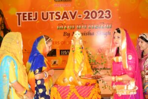 मनीषा ने बताया कि हर साल सावन मास की शुक्ल पक्ष की तृतीया तिथि को हरियाली तीज मनाई जाती है. इस दिन महिलाएँ व्रत रखकर माँ पार्वती और भगवान शिव जी की पूजा करती हैं , यह दिन सुहाग का प्रतीक है । यह परंपरा और विरासत का उत्सव है। इसी को तीज से दो दिन पहले फाउंडेशन की ओर पूरे परम्परागत अंदाज में मनाया गया। पूरे विधि विधान से तीज माता की सवारी निकाल कर पूजा की गई. पूरे विधि विधान से तीज माता की पूजा की गई है। उसके बाद महिलाएँ ने लोकगीतों पर नृत्य किया। यह देखने के लिए कॉलेजों के विद्यार्थियों को भी आमंत्रित किया गया था जो कि इस कार्यक्रम के माध्यम से संस्कृति से अवगत हुए और कार्यक्रम का आनंद उठाया।