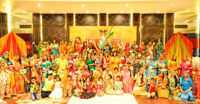 जयपुर । हर साल की तरह इस साल भी सावन में आने वाली हरियाली तीज का सेलिब्रेशन ज़ोरों पर है . मान द वैल्यू फाउंडेशन की ओर से इस बार “तिरंगा संग लहरिया” की थीम पर तीज उत्सव बड़े हर्सोल्लास के साथ मनाया गया। तीज उत्सव में महिलाओं ने बड़े उत्साह के साथ भाग लिया महिलाएँ बड़े खूबसूरत अंदाज़ में सज-धज कर लोकगीतों पर थिरकती हुई नजर आई। फाउंडेशन की संस्थापक मनीषा सिंह ने बताया कि उत्सव का मुख्य उद्देश्य कला और संस्कृति को बढ़ावा देना है, साथ ही लुप्त होती परंपराओं को युवा पीढ़ी से जोड़ना है। मनीषा सिंह ने बताया कि हरियाली तीज हमारी भारतीय संस्कृति का एक प्रतीक हैं। इस दिन को राजस्थान में बड़े हर्षोंउल्लास और उत्साह के साथ मनाया जाता है। इस तरह के पर्व हमें प्रेम- सौहार्द और भाईचारे का संदेश देते हैं , साथ ही हमारी संस्कृति से जोड़ कर रख सके।