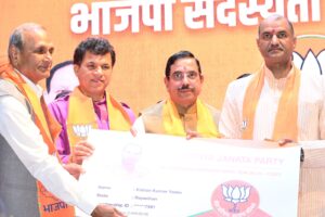 वही प्रदेशाध्यक्ष सी पी जोशी ने संबोधित करते हुए कहा कि भाजपा विश्व का सबसे बडा राजनैतिक दल है। भाजपा से जुडने को लेकर नवमतदाताओं में उत्सुकता का माहौल है। भाजपा एक विचार है, पदाधिकारी बदलते हैं विचार नहीं। सिर्फ भारतीय जनता पार्टी ऐसी पार्टी है जहां बूथ स्तर का कार्यकर्ता राष्ट्रीय स्तर तक पहुंच सकता है। सदस्यता अभियान के संयोजक सांसद बाबा बालकनाथ ने अपने संबोधन में कहा कि विशेष सदस्यता अभियान 17 अगस्त से 28 अगस्त तक चलेगा। इस सदस्यता अभियान से एक बडे अभियान का आगाज होगा। भाजपा अपने इस सदस्यता अभियान के माध्यम से समाज के हर वर्ग तक पहुंचेगी। बूथ स्तर के कार्यकर्ता से लेकर प्रत्येक पदाधिकारी संकल्प के साथ सदस्यता अभियान में जुटेगा। भाजपा की ओर से विशेष सदस्यता अभियान से जुडने के लिए टोल फ्री नंबर (8140-200-200) जारी किया गया है। टोल फ्री नंबर पर मिस्ड कॉल के अलावा भाजपा की ओर से ‘‘क्यू आर कोड’’ स्कैनर को स्कैन करके भी आप भाजपा की सदस्यता ग्रहण कर सकते हैं। इस टोल फ्री नंबर पर मिस्ड कॉल देकर भाजपा की सदस्यता ग्रहण की जा सकती है। सदस्यता अभियान की लॉंचिंग के समय प्रदेश महामंत्री भजनलाल शर्मा, मोतीलाल मीणा, महापौर सौम्या गुर्जर सहित अन्य भाजपा कार्यकर्ता एंव पदाधिकारी मौजूद रहे।
