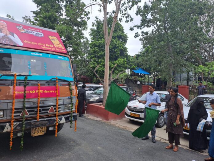 जयपुर, 23 अगस्त। जिला कलक्ट्रेट सभागार जयपुर में बुधवार को मुख्य कार्यकारी अधिकारी जिला परिषद डॉ. शिल्पा सिंह एवं उपनिदेशक सूचना एवं जनसम्पर्क मान सिंह मीणा ने राजस्थान सरकार की योजनाओं एवं उपलब्धियों पर आधारित प्रचार रथ एलईडी वैन को हरी झंडी दिखाकर रवाना किया।
