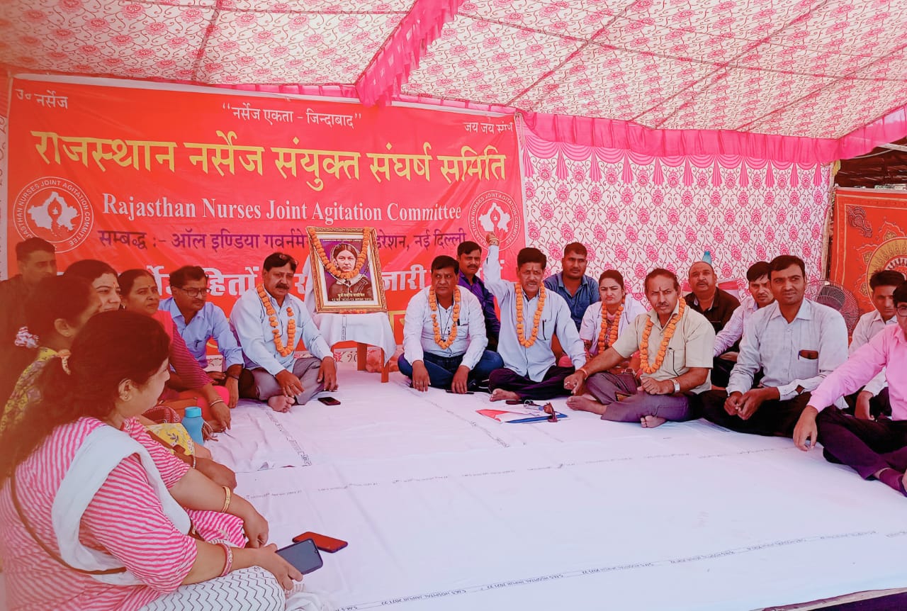 जयपुर | राजस्थान नर्सेज संयुक्त संघर्ष समिति के बैनर तले जयपुर के एसएमएस अस्पताल में नर्सेज ने अनशन शुरू कर दिया कल से अनिश्चितकालीन भूख हड़ताल में बदल दिया जाएगा।समिति के प्रदेश संयोजक नरेंद्र सिंह शेखावत, पुरषोत्तम कुम्भज एवं प्रदेश प्रवक्ता अनेश सैनी के नेतृत्व में सीएम गहलोत से मिलकर ज्ञापन देकर नर्सेज की मांगों को शीघ्र माने जाने का आग्रह किया।1 सितंबर को हुई एसीएस स्तर की वार्ता में हुए निर्णय का 28 दिन बाद भी कोई भी आदेश जारी नहीं होने से नर्सेज में भारी रोष है जिससे आज पुन: नर्सेज ने आंदोलन प्रारम्भ कर दिया जिसके तहत जयपुर में प्रदेश स्तरीय धरने पर आज प्रदेश संयोजक राजेंद्र सिंह राना, भूदेव धाकड़, केके यादव, रामरतन जांगिड़, तारावती चौधरी ने क्रमिक अनशन की शुरुआत की एवं कल 30 सितंबर से राजेंद्र सिंह राना और केके यादव आमरण अनशन की शुरुआत करेंगे।