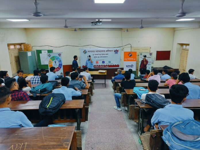 जयपुर,। विधानसभा चुनाव में शत प्रतिशत मतदान एवं युवाओं की सक्रिय भागीदारी सुनिश्चित करने के लिए जिला निर्वाचन कार्यालय, जयपुर द्वारा जिले के सभी 19 विधानसभा क्षेत्रों में सघन मतदाता जागरूकता अभियान का आयोजन किया जा रहा है। जिसके तहत विभिन्न स्थानों पर विभिन्न गतिविधियों के माध्यम से मतदान की अपील की जा रही है।