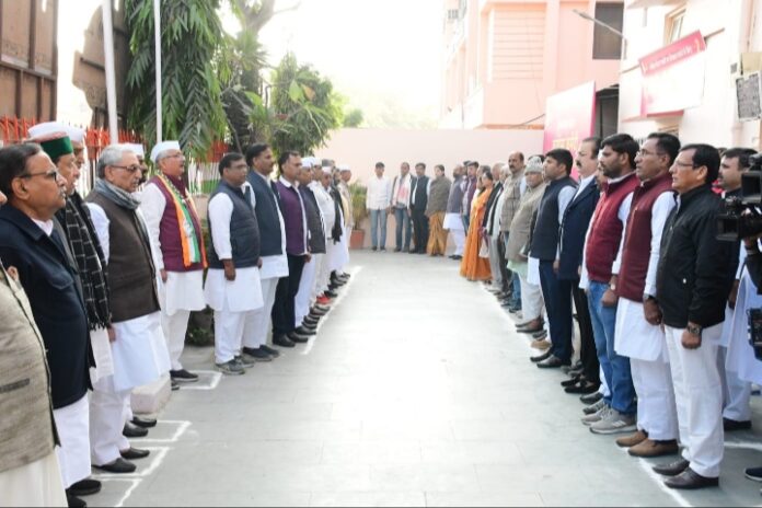 जयपुर । राजस्थान प्रदेश कांग्रेस कमेटी मुख्यालय, जयपुर पर आज कांग्रेस के 139वें स्थापना दिवस के अवसर पर ध्वजारोहण किया गया। साथ ही प्रदेशभर में जिला एवं ब्लॉक स्तर पर कांग्रेस स्थापना दिवस के अवसर पर विभिन्न सामाजिक कार्यक्रम आयोजित किये। ध्वजारोहण के अवसर पर उपस्थित सभी कांग्रेसजनों ने कांग्रेस ध्वज को सलामी देते हुये महात्मा गॉंधी के दिखाये मार्ग पर चलते हुये लोकतंत्र की रक्षा का संकल्प लिया।
