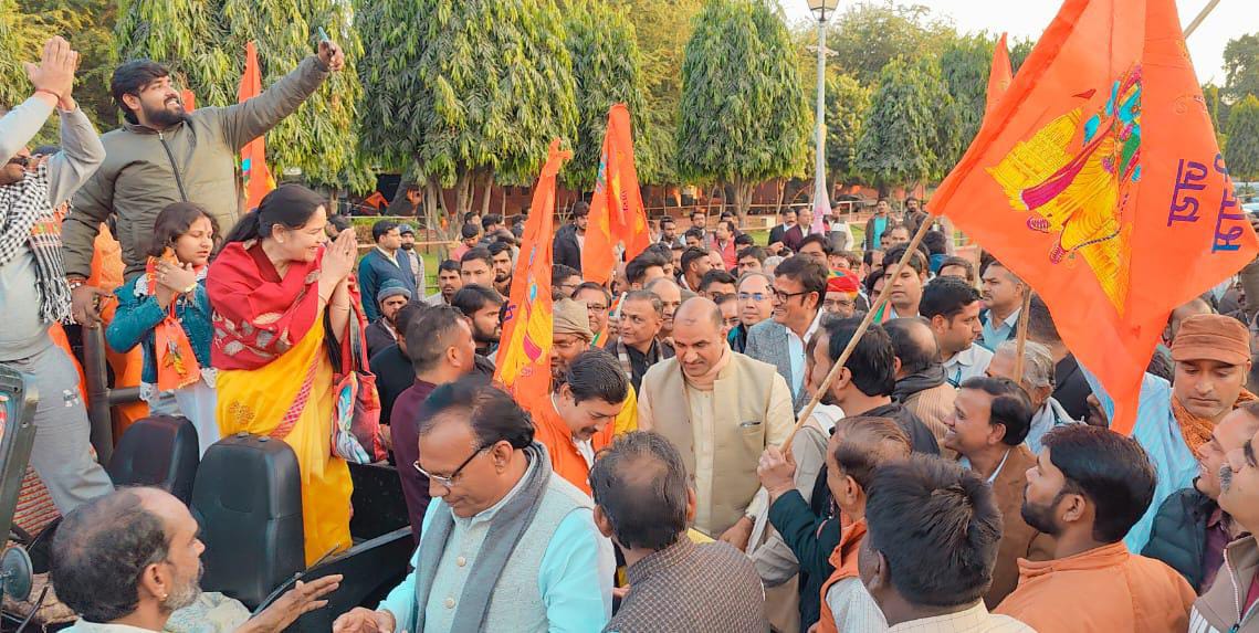 जयपुर | भाजपा जयपुर शहर द्वारा श्री राम मंदिर प्राण प्रतिष्ठा उत्सव के उपलक्ष्य में आज अल्बर्ट हॉल से रोजगारेश्वर महादेव मंदिर छोटी चौपड़ तक विशाल ‘श्री राम यात्रा’ का आयोजन किया गया |