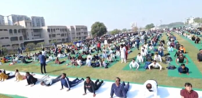 राजस्थान नर्सिंग कौंसिल के रजिस्ट्रार डॉ. शशिकान्त शर्मा ने बताया कि सूर्य नमस्कार कार्यक्रम के मुख्य आयोजन के मुख्य अतिथि प्रताप भानु सिंह शेखावत सचिव दीनदयाल उपाध्याय स्मृति समारोह समिति एवं मुख्य वक्ता हेमन्त सेठिया सह संघचालक राष्ट्रीय स्वयंसेवक संघ जयपुर प्रान्त ने माँ भारती के समक्ष दीप प्रज्जवलन कर कार्यक्रम की शुरूआत की। कार्यक्रम में 2500 नर्सेज ने एवं समस्त प्रदेश में 60 हजार नर्सेज ने नूतन ऊर्जा के साथ सूर्य नमस्कार में भाग लिया। इस अवसर पर हजारो की संख्या में कार्यक्रम के हिस्सा बने नर्सिंगकर्मी, नर्सिंग छात्र-छात्राओं को संबोधित करते हुए मुख्य वक्ता माननीय हेमन्त सेठिया सह संघचालक राष्ट्रीय स्वयंसेवक संघ जयपुर प्रान्त ने कहा कि बडे़-बड़े बोल बोलने से भारत विकसित भारत नहीं बन सकता बल्कि अपने आप की दैनिक दिनचर्या की आदतों में सुधार करने से ही विकसित भारत बन सकता है। उन्होनें दैनिक जीवन में ईमानदारी, अनुशासन व नेक इरादों पर जोर देते हुए कहा कि हम कानून की पालना करें, अपव्यय से बचें, एक-दूसरे की मदद करें, अपना कार्य निष्ठा एवं ईमानदारी से करें तो हम राष्ट्र निर्माण में सहायक सिद्ध होंगे।