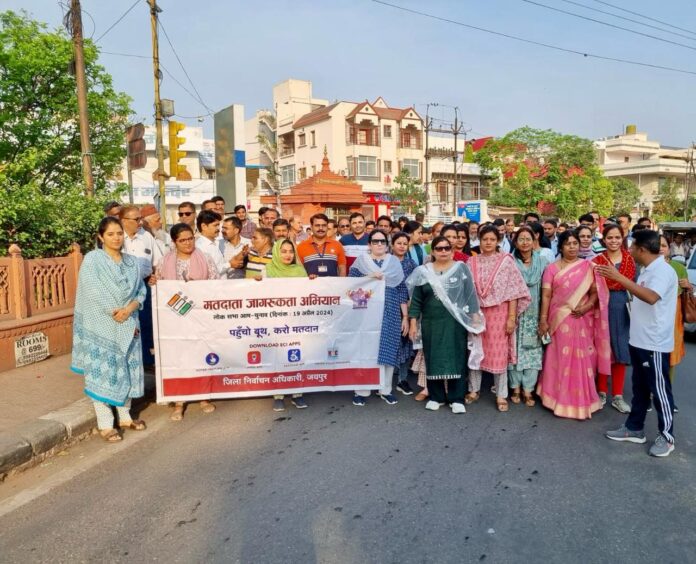 जयपुर, 13 अप्रैल। आगामी लोकसभा चुनाव में प्रत्येक मतदाता की सक्रिय भागीदारी एवं सौ प्रतिशत मतदान सुनिश्चित करने के लिए जयपुर जिला निर्वाचन कार्यालय ने हर संभव प्रयास किये जा रहे हैं। घर-घर जाकर मतदाताओं को मतदान के लिए प्रेरित किया जा रहा है वहीं, सतरंगी सप्ताह के तहत भी जिले में मतदाता जागरूकता पर आधारित विभिन्न कार्यक्रमों का आयोजन किया जा रहा है। जिला निर्वाचन अधिकारी प्रकाश राजपुरोहित एवं जिला स्वीप नोडल अधिकारी डॉ. शिल्पा सिंह के निर्देशन में शनिवार को हवा महल एवं सिविल लाइन्स विधानसभा क्षेत्र के राजस्थान पुलिस अकादमी, आवासीय परिसर के गेट, शास्त्री नगर से भट्टा बस्ती पुलिस थाना तक ‘पहुंचो बूथ, करो मतदान थीम‘ पर मतदाता जागरूकता रैली का आयोजन किया गया। हवामहल विधानसभा क्षेत्र की सहायक रिटर्निंग अधिकारी डॉ सरिता शर्मा ने रैली को हरी झंडी दिखाकर रवाना किया। भट्टा बस्ती के सामने डॉ. सरिता शर्मा ने मतदाताओं को मतदान की शपथ दिलाई एवं प्रत्येक मतदाता से 19 अप्रैल को अपने मताधिकार का प्रयोग करने की अपील की। इस दौरान विधानसभा क्षेत्र हवामहल के स्वीप प्रभारी श्री पवन वशिष्ठ लगभग समस्त सुपरवाइजर्स एवं 150 से 200 बूथ लेवल अधिकारियों के साथ-साथ बड़ी संख्या में आमजन ने भी भाग लिया।