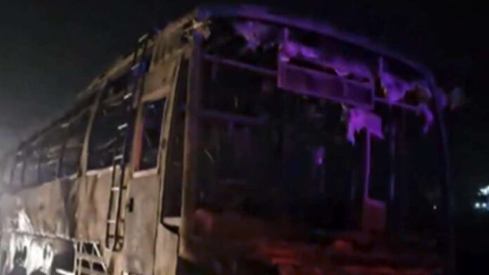 नूह, 18 मई | हरियाणा के कुंडली मानेसर-पलवल एक्सप्रेसवे पर श्रद्धालुओं से भरी एक बस में भीषण आग लग गई. इस हादसे में 9 लोगों की दर्दनाक मौत हो गई. बस में सवार सभी लोग पंजाब और चंडीगढ़ के रहने वाले हैं | हरियाणा के नूंह में कुंडली मानेसर-पलवल एक्सप्रेसवे पर भीषण सड़क हादसा हो गया | श्रद्धालुओं से भरी टूरिस्ट बस में आग लग गई | इस हादसे में 9 लोगों की दर्दनाक मौत हो गई| वहीं कई लोग घायल हो गए. घटना देर रात 2:00 बजे की है | घायलों को स्थानीय अस्पताल में भर्ती कराया गया है बस मथुरा से जालंधर जा रही थी | घटना की सूचना मिलते ही पुलिस की टीम मौके पर पहुंची साथ ही फायर ब्रिगेड की टीम भी पहुंची काफी मशक्कत के बाद आग पर काबू पाया गया | बस की खिड़कियां तोड़कर घायलों को निकाला गया इस हादसे में 9 लोग बुरी तरह से झुलस गए थे, जिनकी मौके पर ही मौत हो गई | वहीं कुछ लोग गंभीर रूप से घायल हैं, जिनको स्थानीय अस्पताल में भर्ती कराया गया है |