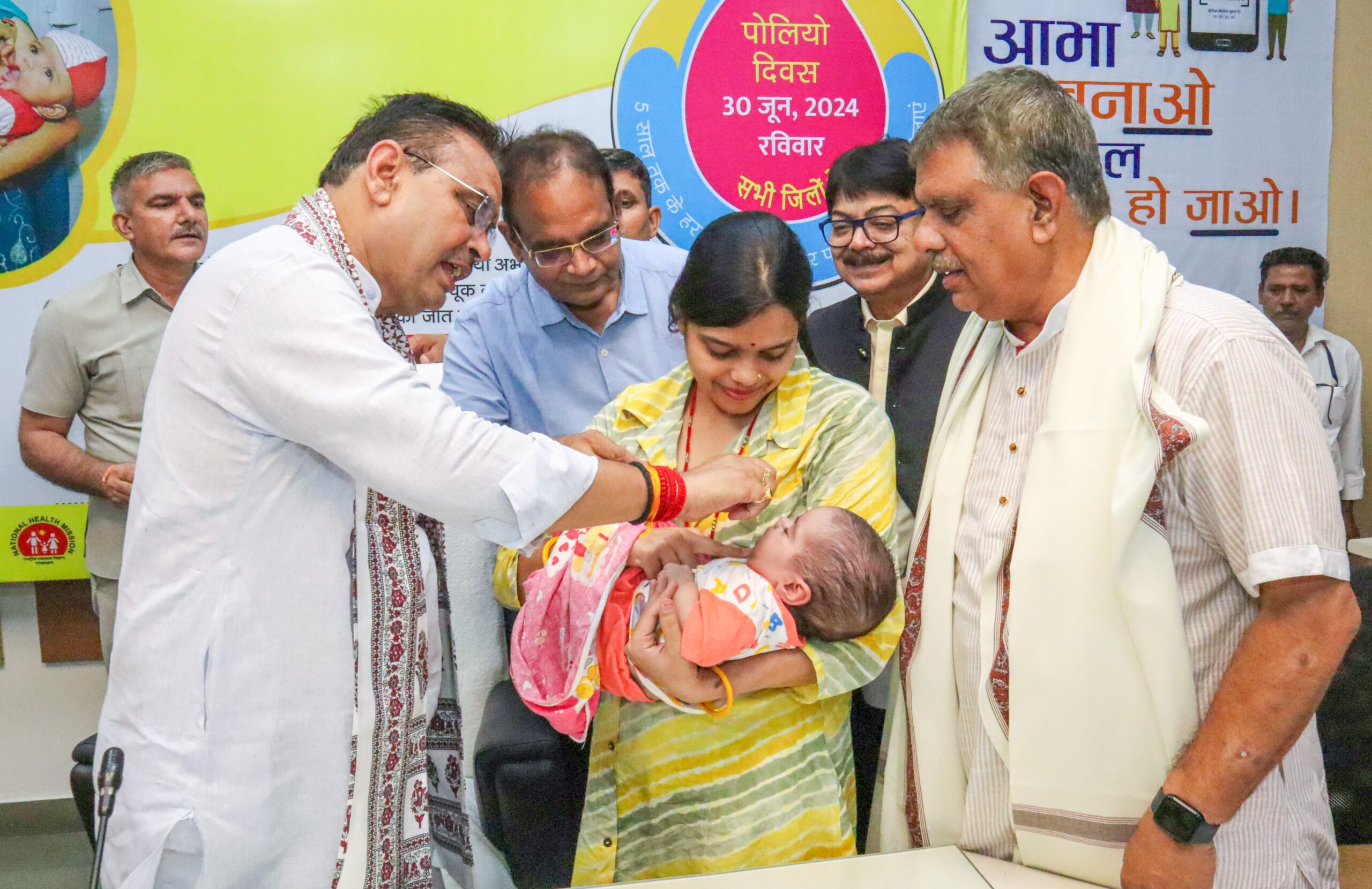 शर्मा ने रविवार को मुख्यमंत्री निवास पर चिकित्सा विभाग के तीन अभियानों का शुभारम्भ किया। उन्होंने पोलियो दिवस के अवसर पर 5 वर्ष तक के बच्चों को पल्स पोलियो की खुराक पिलाकर प्रदेश में ‘राष्ट्रीय पल्स पोलियो अभियान’ की शुरूआत की। उन्होंने ‘स्टॉप डायरिया अभियान-2024’ एवं आयुष्मान भारत डिजिटल मिशन के तहत ‘आभा आईडी बनाओ’ अभियान का भी शुभारम्भ किया। इस अवसर पर मुख्यमंत्री भजन लाला शर्मा तथा चिकित्सा एवं स्वास्थ्य मंत्री गजेन्द्र सिंह खींवसर ने तीनों अभियानों के पोस्टर्स का विमोचन कर लाभार्थियों को आभा आईडी कार्ड प्रदान किए तथा बच्चों को ओआरएस के पैकेट एवं जिंक की गोलियां बांटी।
