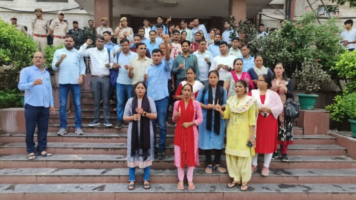 जयपुर 17 अगस्त | राजस्थान नर्सेज एसोसिएशन के प्रदेशाध्यक्ष खुशीराम मीना एवं नर्सेज संघर्ष समिति के जयपुर संयोजक अजय बघेल के नेतृत्व में उत्तराखंड में महिला नर्सिंग ऑफिसर व कोलकाता में महिला चिकित्सक के साथ हुए जघन्य अपराध के दोषियों को फांसी की सजा दिलवाने के लिए सवाई मानसिंह चिकित्सालय जयपुर के नर्सेज ने न्याय यात्रा निकाली। सभी नर्सेज ने एकजुटता से न्याय की मांग उठाई और न्याय नहीं मिलने तक लगातार संघर्ष जारी रखने का निर्णय लिया |