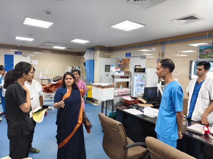 जयपुर, 13 सितंबर। चिकित्सा एवं स्वास्थ्य विभाग की प्रमुख शासन सचिव श्रीमती गायत्री राठौड़ ने गुरुवार देर रात जनाना अस्पताल एवं सांगानेरी गेट स्थित महिला चिकित्सालय में आकस्मिक निरीक्षण कर व्यवस्थाओं का जायजा लिया। उन्होंने स्वास्थ्य सेवाओं को और बेहतर करने एवं पेशेंट फ्रेंडली बनाने के निर्देश दिए। श्रीमती राठौड़ रात करीब 8.30 बजे अपने कार्यालय से रवाना होकर अचानक जनाना अस्पताल पहुंचीं और करीब 9.30 बजे महिला चिकित्सालय पहुंची। उन्होंने वहां सामान्य वार्ड, आईसीयू, लेबर रूम, एनआईसीयू सहित विभिन्न इकाइयों में जाकर स्वास्थ्य सुविधाओं का जायजा लिया। उन्होंने मौके पर उपस्थित चिकित्सकों एवं अन्य स्वास्थ्य कर्मियों को निर्देश दिए कि रोगियों के उपचार में किसी तरह की कमी नहीं रहे। रात के समय भी अपनी पारी के अनुसार सीनियर डॉक्टर भी उपस्थित रहें। आपातकालीन स्थिति में आने वाले रोगियों को तत्काल उपचार उपलब्ध कराया जाए।