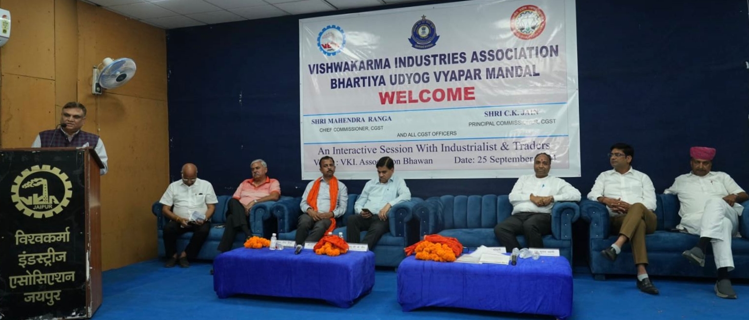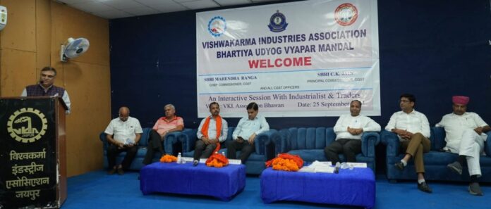 जयपुर 26 सितम्बर | विश्वकर्मा इंडस्ट्रीज एसोसिएशन का जीएसटी पर एक सत्र का आयोजन रखा गया। जिसमे अध्यक्ष जगदीश सोमानी, महासचिव पुष्प कुमार स्वामी, समस्त कार्यकारिणी ने इस कार्यक्रम में पधारे अधिकारियों का स्वागत किया।अतिथियों का स्वागत करते हुए भारतीय उद्योग व्यापार मंडल के राष्ट्रीय उपाध्यक्ष, फोर्टी कार्यकारी अध्यक्ष व महासचिव राजस्थान चैम्बर ऑफ कॉमर्स एण्ड इण्डस्ट्री डाॅ. अरुण अग्रवाल द्वारा मंच का सफलतापूर्वक संचालन किया गया एवं कहा कि नवीनतम जीएसटी परिवर्तनों और उनके निहितार्थ का विश्लेषण किया गया।