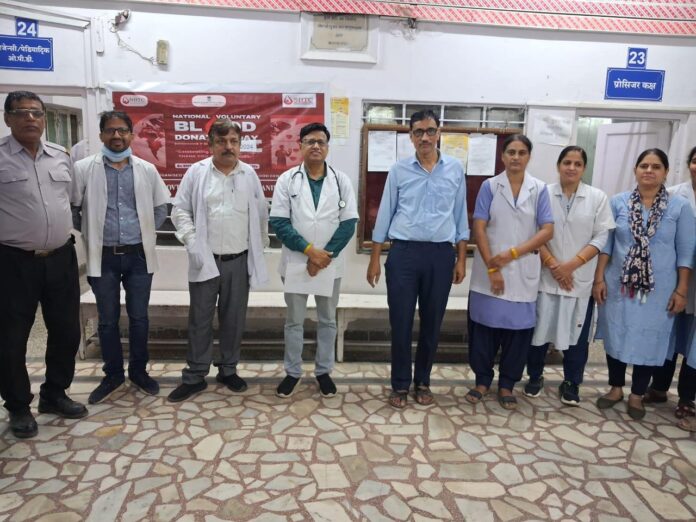जयपुर 1 अक्टूबर | पुरे देश भर में राष्ट्रीय स्वैच्छिक रक्तदान दिवस मनाया जा रहा है जिसमे राजस्थान राज्य में भी रक्तदान के अनेक कार्यक्रम आयोजित किये गये | इस क्रम में बनीपार्क स्थित सेटेलाईट हॉस्पिटल में अति. अधीक्षक डॉ राजेंद्र प्रजापत, उप अधीक्षक डॉ क्षेत्रपाल, नर्सिंग अधीक्षक सुरेश कुमार के नेतृत्व में मौजूद डॉक्टरों हॉस्पिटल कर्मचारियों ने रक्तदान की शपथ ली | साथ परिसर मौजूद, आने वाले लोगो प्रेरित कर उनसे रक्तदान शपथ दिलाई गयी | इस अवसर पर डॉ राजेंद्र प्रजापत ने बताया कि हमारे दुवारा किया गया रक्तदान किसी जीवन की डोर बचाने का काम करेगा | उन्होंने कहा कि सभी लोगो इस कार्य में अधिक अधिक बढ़ चढ़ कर भागीदारी निभानी चाहिए |