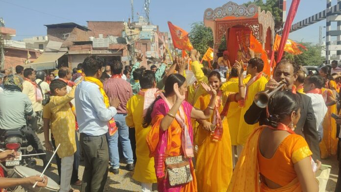 जयपुर, 3 अक्टूबर । अग्रवाल समाज ने देशभर में महाराजा अग्रसेन महाराजा की 5148 वीं जन्म जयंती हर्षोल्लास के साथ मनाई, इस अवसर पर टोंक रोड़ अग्रवाल समाज ने भी अपनी एकजुटता का प्रदर्शन किया और महाराजा अग्रसेन मंच के तत्वाधान में प्रातः 6 बजे से भव्य शोभायात्रा का आयोजन प्रारंभ कर महाराजा अग्रसेन को गाजों, बाजों, साजों और जयकारों के साथ नगर यात्रा करवाई गई। अग्रवाल समाज सेवा समिति प्रचार मंत्री अरविंद अग्रवाल और महाराजा अग्रसेन मंच अध्यक्ष अभिषेक बंसल ने बताया कि हर वर्ष की तरह इस वर्ष भी महाराजा अग्रसेन मंच और टोंक रोड़ अग्रवाल समाज के निर्देशन में शोभायात्रा निकाली गई। इस यात्रा का शुभारंभ टेलीफोन कॉलोनी स्थित शिव मंदिर से विधायक कालीचरण सर्राफ, समिति अध्यक्ष आरडी गुप्ता, वरिष्ठ उपाध्यक्ष केके सिंघल, मुकेश गुप्ता समिति अन्य अतिथियों ने महाराजा अग्रसेन की महामंगल आरती कर यात्रा का शुभारंभ किया | यात्रा आदर्श बाजार, शर्मा स्टोर, गली नंबर 17, वेलकम मॉडल स्कूल, विजय टेंट हाउस, अहिंसा पार्क, बरकत नगर, महेश नगर रेलवे फाटक, पुष्पांजलि कॉलोनी होते हुए महेश नगर स्थित अग्रसेन भवन पर जाकर संपन्न हुई।