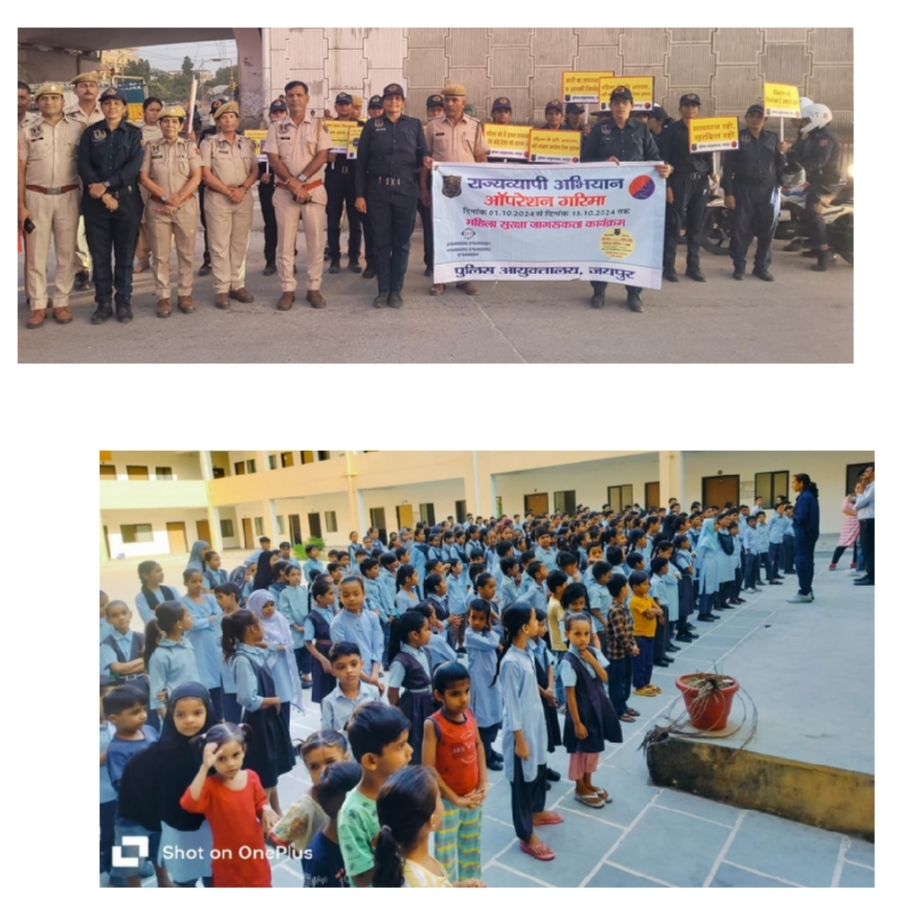जयपुर, 4 अक्टूबर । महिलाओं/ बालिकाओं के साथ होने वाली छेड़छाड़, छींटाकशी आदि की घटनाओं की प्रभावी रोकथाम हेतु पुलिस मुख्यालय राजस्थान जयपुर द्वारा चलाये जा रहे जन जागरूकता अभियान ऑपरेशन गरिमा के विषय में पुलिस आयुक्त बीजू जॉर्ज जोसफ ने बताया कि अतिरिक्त पुलिस आयुक्त योगेश दाधीच के निर्देशन में उक्त अभियान के तहत महिलाओं व बालिकाओं की सुरक्षा के लिए आयुक्तालय जयपुर में महिला सुरक्षा जन-जागरूकता के लिये निर्भया स्क्वॉड द्वारा अभियान चलाकर महिलाओं और बालिकाओं से सम्बन्धित पोस्टर, फ्लैक्स बैनर आदि के माध्यम से महिलाओं और बालिकाओं को जागरूक किया गया ।