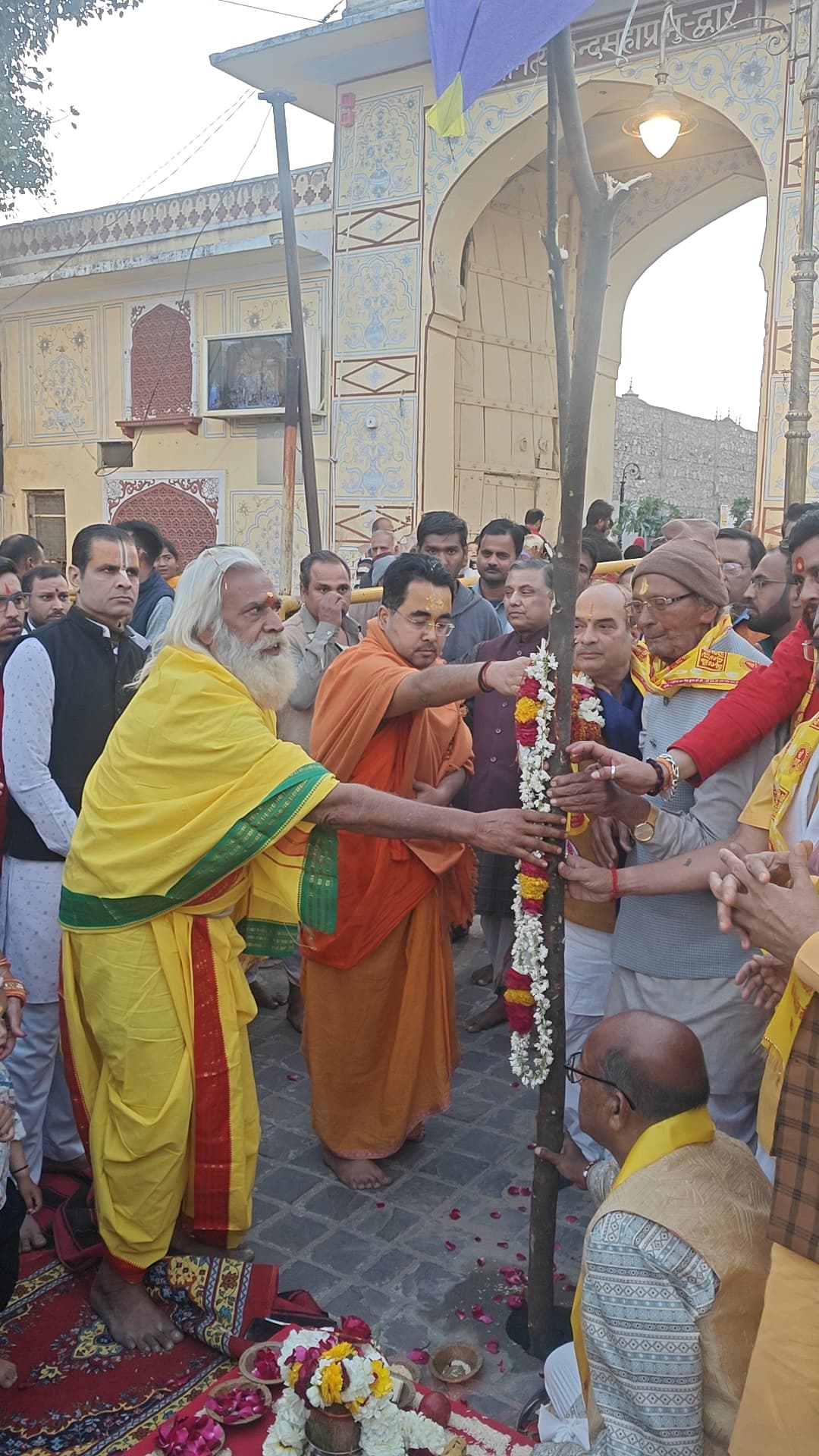 जयपुर, 12 फरवरी | माघ पूर्णिमा के साथ बुधवार को रंगों के त्योहार होली का श्री गणेश आराध्य गोविंद देव जी मंदिर में होली का डांडा पूजन के साथ हुआ। वेद मंत्रोच्चार के साथ गोविंददेवजी मंदिर के महंत अंजन कुमार गोस्वामी के सान्निध्य में मंदिर के सेवाधिकारी मानस गोस्वामी, शुक सम्प्रदाय आचार्य अलबेली माधुरी शरण, श्री सरस परिकर के प्रवक्ता प्रवीण बड़े भैया ज्योतिषाचार्य विनोद शास्त्री पंडित, परकोटा गणेश मंदिर के अमित शर्मा , अभिषेक जोशी पंचांग कर्ता जोधपुर सहित कई मंदिरों के संत-महंतों ने प्रथम पूज्य गणपति और भक्त प्रहलाद का पूजन किया। इसके बाद होली के डांडे का पूजन किया गया। श्री गौड़ विप्र लोकगीत मंडल के कलाकारों ने चंग-ढप पर होली के गीत गाकर माहौल को फाल्गुनी बना दिया। गोविंद देव मंदिर की ओर से सभी संतों-महंतों का दुपट्टा पहनाकर सम्मान किया गया। उल्लेखनीय है कि तीन साल पूर्व तक खजाने वालों के रास्ते बद्रीनाथ जी के चौक में पच्चीस वर्षों से होली का डांडा पूजन किया जाता था। बाजारों में अत्यधिक भीड़ होने और यातायात का भारी दबाव होने की वजह से तीन साल से गोविंद देव जी मन्दिर के बाहर होली का डांडा पूजन किया जाता है। उ होली से ठीक एक माह पूर्व होली का डांडा रोपने की परंपरा है। इसके साथ मान्यता यह भी है कि डांडा रूपते ही सारे मांगलिक कार्य भी रुक जाते हैं। होली उत्सव की शुरुआत के साथ ही मंदिरों में फाग शुरू हो जाते हैं।