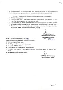 ACS सावंत मनमानी व अनियमितताओं को लेकर सख्त होते हुए मुख्य अभियंता मनीष बेनीवाल के खिलाफ उच्च स्तरीय जांच के आदेश दिए है साथ ही निविदा आवंटन में अनियमितता बरतने वालों के खिलाफ सख्त कार्रवाई के निर्देश दिए । वहीं उन्होंने अपील स्वीकार करते हुए बोली को रद्द करने के संबंध में एसीई, पीएचईडी क्षेत्र भरतपुर द्वारा जारी कार्यालय आदेश संख्या 1290-94 दिनांक को अपास्त किया है । मुख्य अभियंता (शहरी) एवं सहायक अभियंता, पीएचईडी क्षेत्र भरतपुर को आरटीपीपी रू के तहत निर्धारित प्रक्रिया के अनुसार मैसर्स कैलाश चंद चौधरी, जयपुर की बोली पर कार्रवाई करने का निर्देश दिया जाता है। साथ ही मुख्य अभियंता (शहरी), पीएचईडी, जयपुर और सहायक अभियंता, पीएचईडी क्षेत्र के विरुद्ध विभागीय कार्रवाई शुरू की जाय।