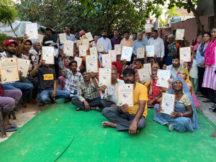 जयपुर, 4 अक्टूबर । गुर्जर की थड़ी बाबा रामदेव नगर में शनिवार को घुमंतू जाति उत्थान न्यास द्वारा पहचान पत्र वितरण कार्यक्रम आयोजित किया गया, जिसमें बस्ती वासियों को पहचान प्रमाण पत्र वितरित किए गए। दशकों से पहचान पत्र बनवाने के लिए दर दर की ठोकरें खाने इन लोगों को जब बस्ती में ही पहचान के पूरे दस्तावेज मिले तो महिलाओं की आंखें खुशी से नम हो गई। न्यास के कार्यकर्ताओं ने जिला प्रशासन से मिलकर बस्तीवासियों के कागजात तैयार करवाए थे। प्रांत घुमंतू संयोजक महेंद्र सिंह राजावत ने घुमंतू समाज के गौरवशाली इतिहास पर प्रकाश डाला।