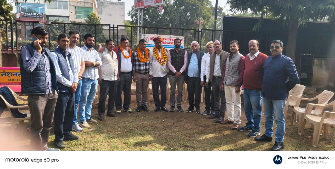 जयपुर, 21 दिसम्बर। अखिल राजस्थान राज्य वाहन चालक एवं तकनीकी कर्मचारी संघ की एक महत्वपूर्ण बैठक आज पशुपालन विभाग, जयपुर में आयोजित की गई। जिला अध्यक्ष विजय सिंह की अध्यक्षता में आयोजित इस बैठक में सर्व सम्मति से निर्णय लेते हुए जय सिंह राठौड़ को पुनः निर्विरोध उप शाखा अध्यक्ष (पशुपालन विभाग) निर्वाचित किया गया। संगठन की मजबूती के लिए सर्वसम्मति से अन्य पदों पर भी नियुक्तियाँ की गईं, जिनमें मुख्य रूप से राजेंद्र बर्रा महामंत्री, सुरेन्द्र सिंह उपाध्यक्ष, हंसराज मीणा को कोषाध्यक्ष नियुक्त किया गया।