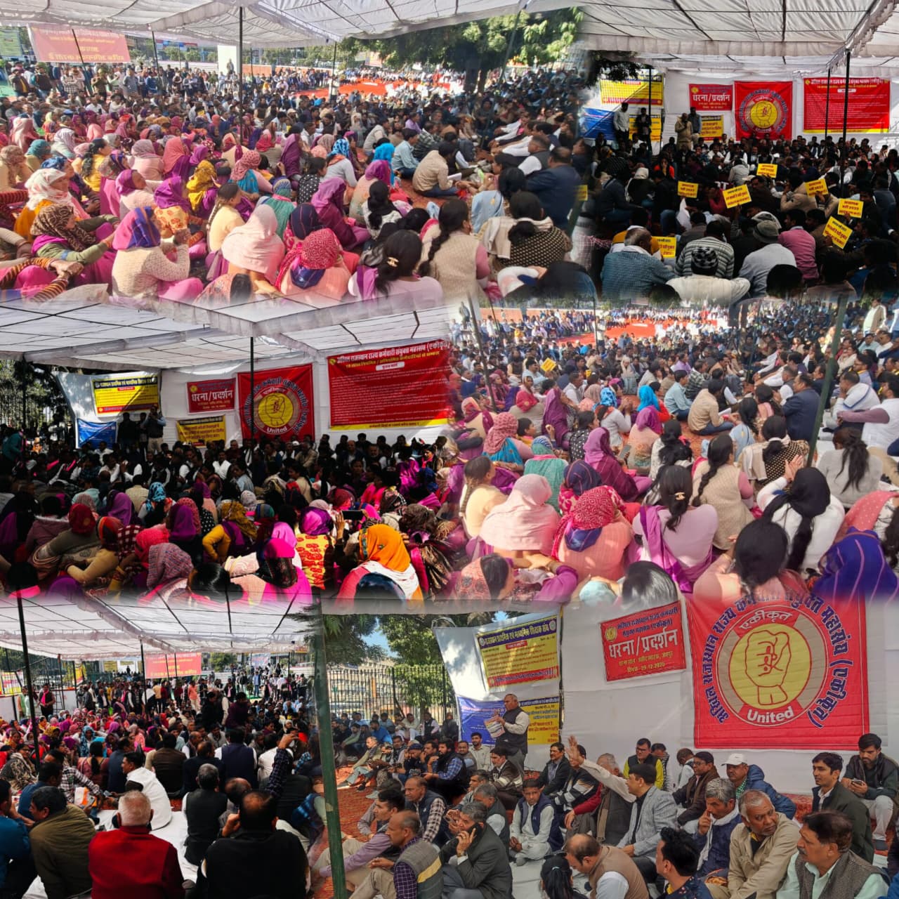 जयपुर, 29 दिसम्बर | अखिल राजस्थान राज्य कर्मचारी संयुक्त महासंघ एकीकृत के महासंघ प्रमुख महेंद्र सिंह नेतृत्व में शहीद स्मारक पर एक दिवसीय विशाल धरना दिया गया। जिसमें प्रदेश भर के कार्मिकों में भारी आक्रोश और असंतोष के चलते हजारों की तादाद में दूर जिलों से कार्मिक शहीद स्मारक जयपुर पहुंचे। राजस्थान प्राथमिक एवं माध्यमिक शिक्षक संघ, प्रबोधक संघ,शिक्षक संघ सियाराम, लैब टेक्नीशियन नर्सेज , ECG संघ, राजस्थान ग्रामीण जनता जल योजना,विद्यालय सहायक पंचायत शिक्षक संघ,ANM LHV संघ,आंगनबाड़ी संघ,RMRS एवं NGO संघ, सर्व दिव्यांग कार्मिक जन संघर्ष समिति, राजस्थान काउंसिल आफ डिप्लोमा इंजीनियर राजस्थान योग प्रशिक्षक महासंघ, एनिमल संघ राज.राजस्थान पशु मित्र संघ, नॉन TSP शिक्षक संघर्ष समिति, अखिल राजस्थान महिला एवं बाल विकास विभाग महिला पर्यवेक्षक संघ, राजस्थान राजस्थान नर्सेज भर्ती संघर्ष समिति सहित लगभग 55 घटक दलों ने भारी तादाद में कार्मिक जयपुर पहुंचे।