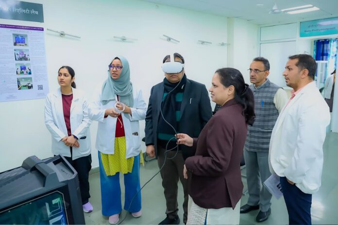 प्रिंसिपल सेक्रेटरी ने राष्ट्रीय आयुर्वेद संस्थान में स्थापित अत्याधुनिक प्रयोगशालाओं एवं तकनीकों की सराहना करते हुए कहा कि आयुर्वेद के क्षेत्र में चिकित्सा और शिक्षा का यह संस्थान देशभर में अग्रणी भूमिका निभा रहा है। उन्होंने आश्वस्त किया कि राज्य सरकार की ओर से संस्थान के विस्तार के लिए जयपुर में शीघ्र ही भूमि उपलब्ध कराने के हरसंभव प्रयास किए जाएंगे, ताकि अधिक से अधिक आमजन को आधुनिक तकनीक के साथ आयुर्वेदिक चिकित्सा का लाभ मिल सके। इस दौरान सुबीर कुमार ने संस्थान की ओपीडी, क्रिया शरीर विभाग में स्थापित एडवांस ह्यूमन फिजियोलॉजी लैब, सिम्युलेशन लैब, एनाटॉमी विभाग, फार्मेसी विभाग, एनिमल हाउस, ड्रग लैब सहित अन्य विभागों की कार्यप्रणाली का अवलोकन कर व्यवस्थाओं की जानकारी ली। इस अवसर पर संस्थान के संयुक्त निदेशक जे.पी. शर्मा, उपनिदेशक चन्द्रशेखर शर्मा, डॉ. नरिंदर सिंह एवं वरिष्ठ सलाहकार, एन.एन. कुटी सहित अन्य अधिकारी उपस्थित रहे।