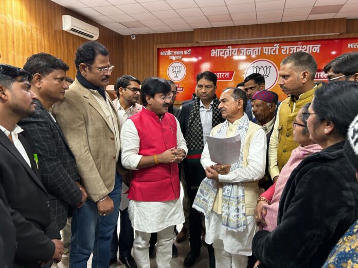 जयपुर, 9 जनवरी | EWS आरक्षण मंच के प्रतिनिधिमंडल ने बीजेपी प्रदेश अध्यक्ष मदन राठौड़ से मुलाक़ात कर सवर्ण और EWS के लंबित मुद्दों से अवगत कराया और आगाह किया कि दो वर्ष पूर्ण होने पर भी हमारे मुद्दे लंबित है यदि आगामी बजट में पूरे नहीं होते है तो फिर विधानसभा सत्र में धरना और अनशन के लिए मजबूर होंगे । ईडब्ल्यूएस वर्ग व सामान्य वर्ग में राजपूत, ब्राह्मण, वैश्य, माथुर, कायस्थ, जैन, मुस्लिम और अन्य अनारक्षित वर्ग आता है सरकार को बने हुये दो वर्ष पूर्ण हो चुके है। प्रदेश में भाजपा स्वयं आप प्रदेश अध्यक्ष, मुख्यमंत्री, उप मुख्यमंत्री, समाज कल्याण मंत्री, विधायक, सांसद सभी को इस बावत् अवगत करवा चुके है, लेकिन मुद्दे लंबित है ।