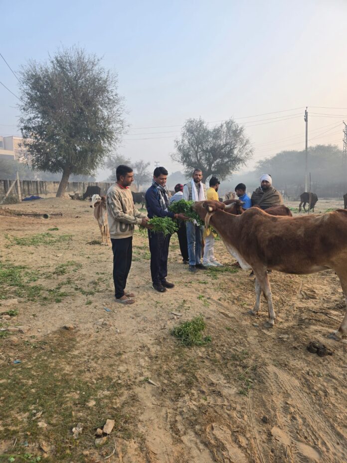 जयपुर, 14 जनवरी। स्वर्गीय जिज्ञासा वाजपेयी की स्मृति दिवस उनके पति अनिल वाजपेयी ने श्री श्याम गौ सेवा परिवार समिति के ततवावधान में नेवटा स्थित श्री वीर तेजाजी गोशाला में एक गाड़ी हरे चारे का गायों को वितरण किया। समिति अध्यक्ष नरेंद्र कुमार कुमार टेलर ने बताया कि षटशीला एकादशी व मकर संक्रांति के पावन अवसर पर अनिल वाजपेयी के दिशा निर्देश पर नेवटा की श्री वीर तेजाजी गोशाला में समिति के सभी सदस्यों व पदधिकारियों ने एकजुट होकर गौ सेवा करने का सौभाग्य प्राप्त हुआ।