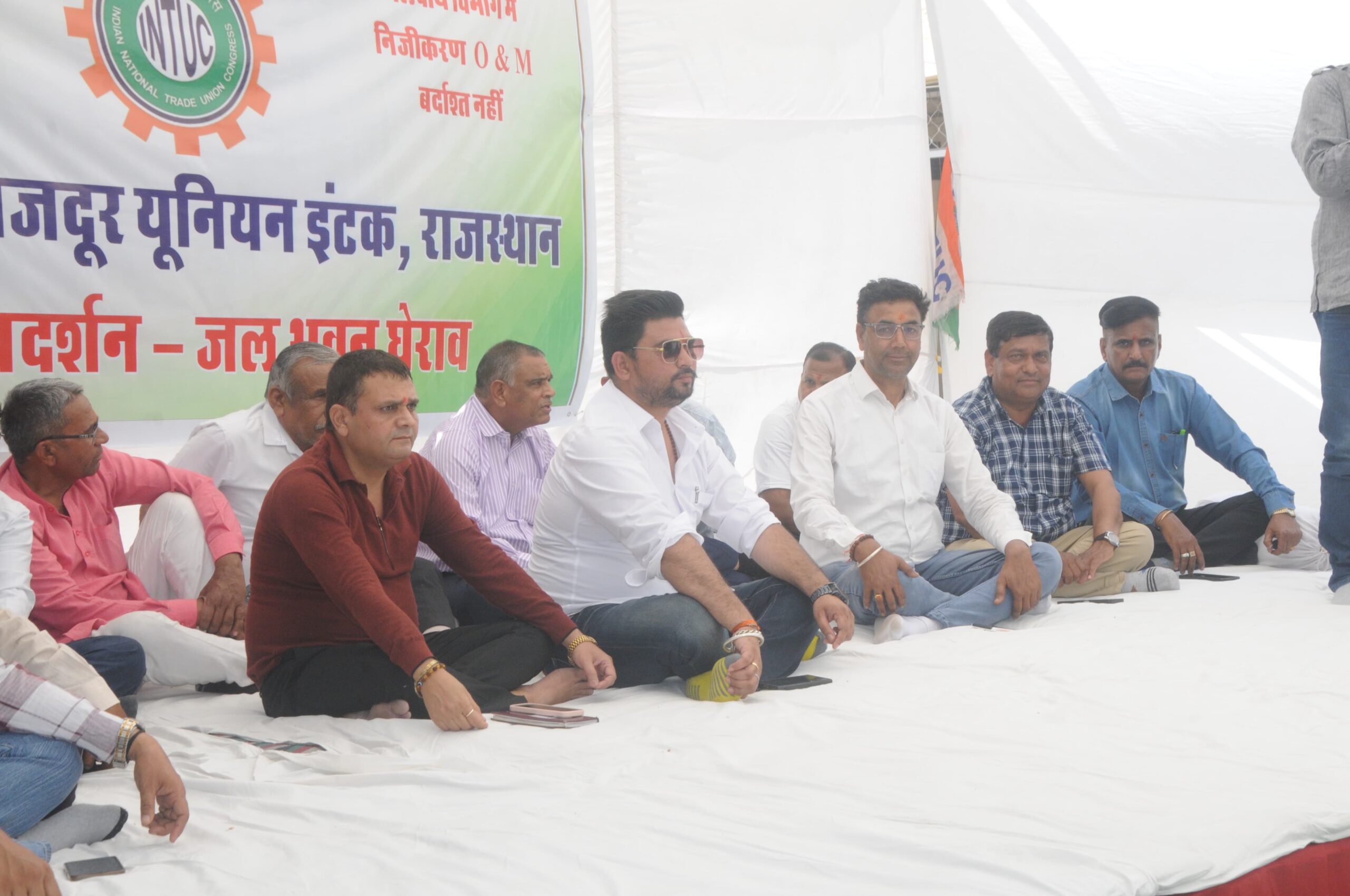 जयपुर, 13 मार्च। जलदाय विभाग के निजीकरण के विरोध में आज जल भवन जयपुर में प्रान्तीय नल मजदूर यूनियन (इंटक) के प्रदेशाध्यक्ष संजय सिंह शेखावत के नेतृत्व में प्रदेश भर से आए हजारो जलदाय कर्मचारियों ने जोरदार विरोध प्रदर्शन करते हुए सरकार और विभागीय अधिकारियों के सामने अपनी एकजुटता की ताकत दिखाई। प्रदेशाध्यक्ष संजय सिंह शेखावत व कार्यकारी प्रदेशाध्यक्ष बाबूलाल शर्मा व जिला अध्यक्ष तारा चन्द सैनी ने स्पष्ट शब्दों में कहा कि जलदाय विभाग कर्मचारियों की जीवन रेखा है और इसे किसी भी हाल में निजी हाथों में नहीं जाने दिया जाएगा।