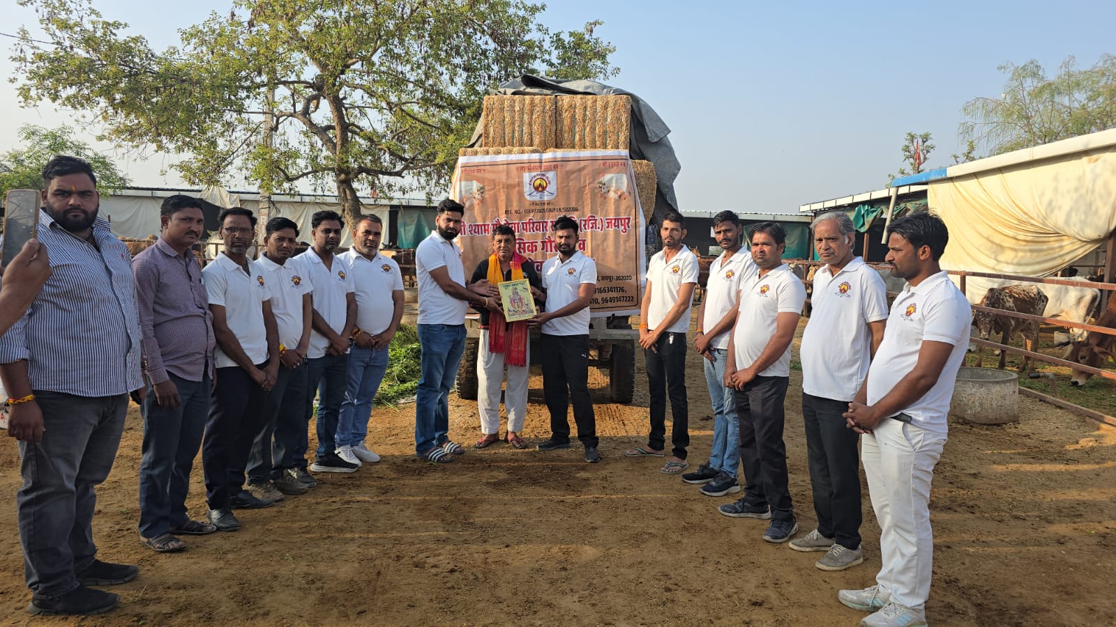 गौशाला प्रभारी कैलाश चंद्र शर्मा का स्वागत समिति के उपाध्यक्ष रामचंद्र चौधरी, अरुण शर्मा ,अशोक प्रजापत व रामफूल बैरवा ने किया। इसी के साथ समिति के सक्रिय सदस्य कन्हैया लाल लुगरिया को भी दुप्पटा व मूवमेंटों देकर सम्मानित किया गया। समिति के अरविंद टेलर,सुरेंद्र बैरवा, गणेश नारायण बैरवा, ने किया और उनके उज्जवल भविष्य की कामना की। समिति के ये गणमान्य लोग हुए कार्यक्रम में शामिल रहे | चारे वितरण कार्यक्रम में हनुमान सहाय ,विष्णु शर्मा, भंवर लाल बैरवा,संजय मीणा, ,मेघराज, किशोरी लाल, राशीद , ,सुनील कुमावत,विजेंद्र व समिति के सभी सदस्यों ने श्रमदान किया।