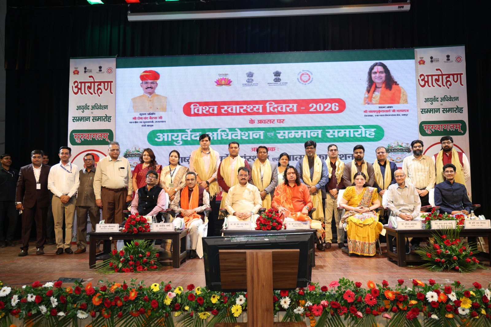 जयपुर, 07 अप्रैल । विश्व स्वास्थ्य दिवस के अवसर पर राष्ट्रीय आयुर्वेद संस्थान जयपुर में आरोहण आयुर्वेद अधिवेशन एवं सम्मान समारोह 2026 का आयोजन संस्थान परिसर में मंगलवार को किया गया। कार्यक्रम में देशभर से आए विशिष्ट अतिथियों, विशेषज्ञों, चिकित्सकों, शोधकर्ताओं, उद्यमियों एवं आयुष क्षेत्र से जुड़े प्रतिनिधियों ने भाग लिया। कार्यक्रम से पूर्व राजस्थान सरकार के माननीय उपमुख्यमंत्री प्रेम चंद बैरवा ने संस्थान के अस्पताल, ओपीडी एवं कैंटीन का निरीक्षण किया तथा आमजन एवं रोगियों को प्रदान की जा रही स्वास्थ्य सुविधाओं की सराहना की। इस अवसर पर यह भी उल्लेखनीय रहा कि राष्ट्रीय आयुर्वेद संस्थान को मानद विश्वविद्यालय का दर्जा स्थायी रूप से प्रदान किया गया है, जिससे संस्थान की शैक्षणिक एवं शोध गतिविधियों को और अधिक सुदृढ़ता मिलेगी।